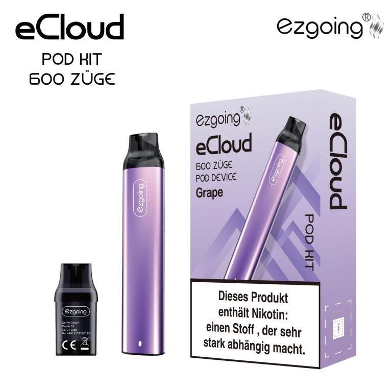 Unser Hauptprodukt, das eCloud Pod Kit, überzeugt durch sein schlankes Design, einfache Handhabung und eine Auswahl an beliebten Geschmacksrichtungen wie Blueberry, Watermelon, Grape, Strawberry und Cherry.